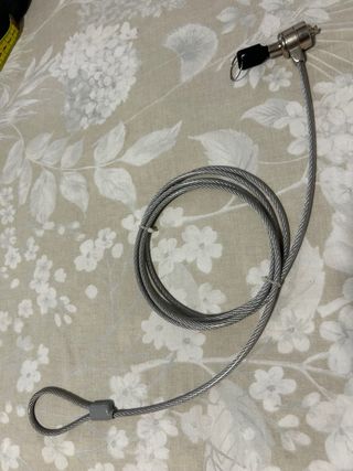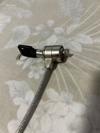Cable de seguridad metálico con cerradura y dos llaves, ideal para proteger portátiles, monitores u otros dispositivos con ranura Kensington. Longitud aproximada del cable: 1,5 m. En perfecto estado, apenas usado. Entrega en mano o envío disponible.