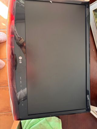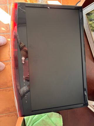 Monitor LG Flatron con un diseño moderno en negro y detalles rojos. - Pantalla de alta definición. - Botones de control en el lateral. -20 pulgadas No tiene pie
