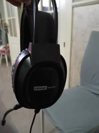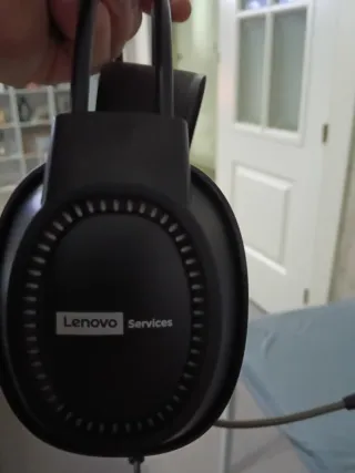 Auriculares para PC de la marca Lenovo en color negro. Diseñados para una experiencia de audio clara. - Diseño ergonómico. - Almohadillas cómodas. - Micrófono integrado.