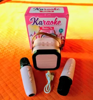 🔵 Set de Karaoke Infantil con 2 Micrófonos 🔵 Luces LED multicolor con efectos: rotación, parpadeo, degradado y más 🔵 5 Modos de cambio de voz: original, voz masculina, femenina, monstruo y bebé 🔵 Ideal para fiestas, cumpleaños y juegos en familia 🔵 Altavoz potente con diseño compacto y asa para llevar a cualquier parte 🔵 Micrófonos inalámbricos fáciles de usar por niños 🔵 Material resistente y seguro, perfecto para peques 🔵 Estado: como nuevo 🔵 Diversión asegurada: cantar, bailar y jugar con efectos de sonido 🔵 Regalo perfecto para niños/as que aman la música y el espectáculo