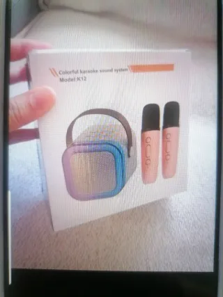 Vendo máquina de karaoke Paaxoo DM-D4, totalmente nueva y sin estrenar. Solo he abierto la caja para comprobar el contenido y hacer las fotos. Si alguien quiere más fotos que me avise. Es un regalo que me hicieron, pero no lo voy a utilizar, así que lo pongo a la venta. Características principales: ✔️ Sistema de altavoces múltiple para sonido potente y claro ✔️ 2 micrófonos inalámbricos incluidos ✔️ Luces LED tipo DJ integradas ✔️ Conexión Bluetooth para móvil, tablet o TV ✔️ Reproducción desde USB, tarjeta TF o dispositivos externos ✔️ Diseño portátil y compacto, ideal para fiestas, reuniones o uso en casa.