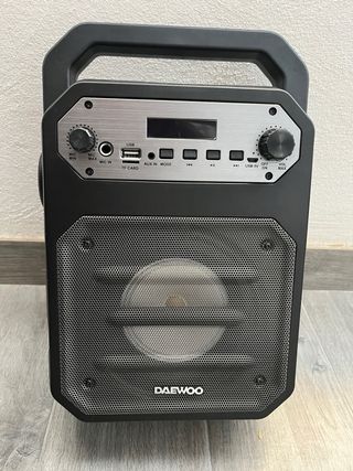 Altavoz portátil Daewoo DSK-345B con función karaoke y conexión Bluetooth. - Incluye un micrófono. - Batería recargable. - Luces LED. - Radio FM.