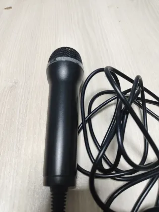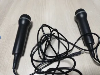 Par de micrófonos negros para karaoke con conexión USB, compatibles con PS4. Usados como mucho 5 veces. - Diseño ergonómico. - Cable de conexión incluido.