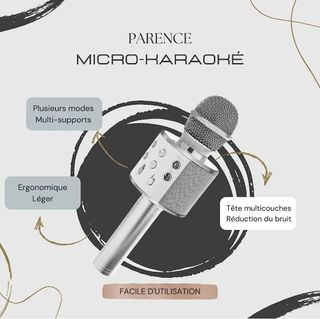 Micrófono de karaoke portátil con altavoz integrado y conectividad Bluetooth. - Diseño elegante y moderno. - Fácil de usar y transportar.