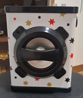 Vendo altavoz karaoke con radio, micrófono... En perfecto estado y en su caja original. Estoy en el bulevar del pla.