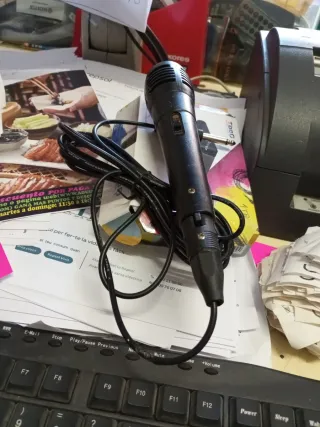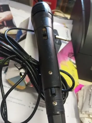 Micrófono de karaoke en color negro. - Cable de conexión incluido. - Interruptor de encendido/apagado.