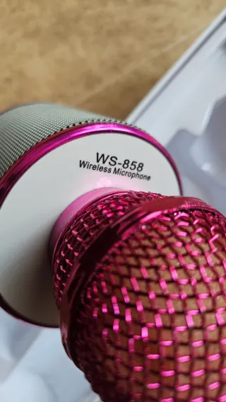 Micrófono de karaoke inalámbrico - Acabado brillante en color rosa y detalles plateados. - Incluye cable de carga.