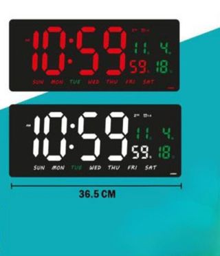 Reloj de pared moderno con pantalla LED grande, hora 12/24h, temperatura °C/°F, calendario y alarma potente tipo tornillo. Diseño elegante (36,5 x 21,5 cm), perfecto para hogar, oficina o estudio. Incluye sensor ambiental, brillo automático y función de día laborable. ✅ Despertador digital multifunción ✅ Alta visibilidad día y noche ✅ Ideal para organizar tu rutina con estilo
