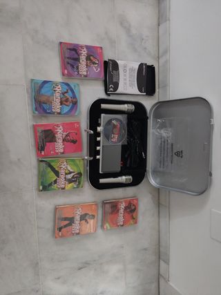 Incluye dos micrófonos, un disco con 25 canciones y el adaptador para PlayStation 2.