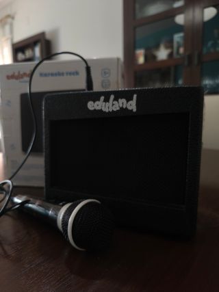 Sistema de karaoke Eduland con micrófono y altavoz. - Diseñado para cantar como tu estrella favorita. - Incluye micrófono. - Altavoz compacto. - Estado, como nuevo