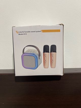 Sistema de karaoke portátil con altavoz y dos micrófonos. - Modelo: K12 - Diseño colorido y moderno. - Incluye dos micrófonos.