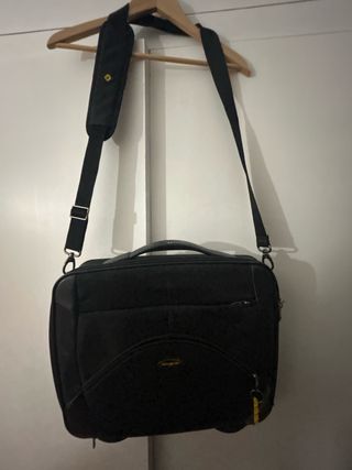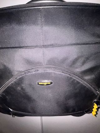 Funda para portátil de la marca Samsonite. Fabricada en material textil resistente y con un diseño elegante. - Compartimento principal acolchado. - Bolsillo frontal con cremallera. - Asa de mano y correa para hombro. - Logo de la marca visible.