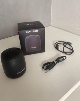 Altavoz inalámbrico de la marca Hugo Boss en color negro. Incluye cables de conexión. - Diseño compacto y moderno. - Ideal para llevar a cualquier parte.