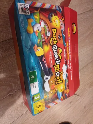 Accesorio para Nintendo Switch con forma de pistola. - Diseño ergonómico. - Color blanco y negro. - Detalle de pato amarillo en la punta.