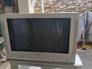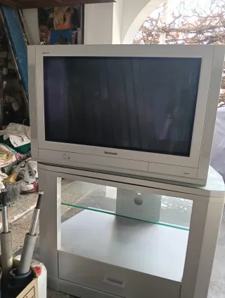Televisor de tubo Panasonic con tecnología Quintrix. - Color gris y blanco. - Diseño clásico.