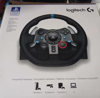 Volante de carreras Logitech G29 Driving Force con pedales. - Diseño de cuero cosido a mano. - Pedales de acelerador, freno y embrague. - Ángulo de giro de 900 grados. - Retroalimentación de fuerza dual.