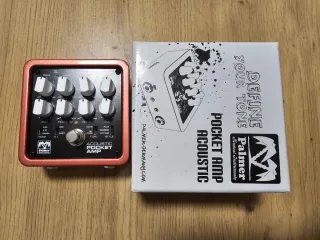 Pedal amplificador acústico Palmer Acoustic Pocket Amp. - Color naranja y blanco. - Diseño compacto y portátil.