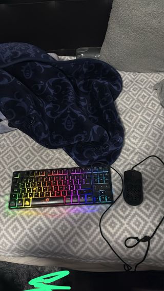 Conjunto de teclado y ratón para gaming con iluminación RGB. El botón de la según foto es pa cambiar la luz del ratón . - Teclado con diseño gaming. - Ratón ergonómico con iluminación. - Cableado.