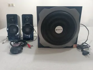 Sistema de altavoces Woxter con subwoofer de 6.5 pulgadas. Incluye un subwoofer de madera para graves potentes y dos altavoces satélite. Cuenta con regulación de bajos y volumen. Diseño moderno en color negro y gris. Apto para PC, reproductores de MP3 y otras fuentes de audio.