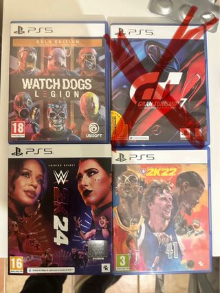 Pack de 4 videojuegos para PlayStation 5. - Watch Dogs Legion (Gold Edition) - WWE 2K24 (Edición Deluxe) - NBA 2K22 Acepto cambios por juegos de Switch o algún otro artículo de mi interés.