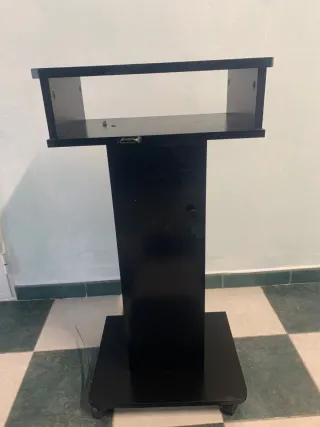 Mesa alta de diseño moderno, con puerta, ideal para colocar un televisor o como soporte. - Color negro. - Base cuadrada. - Ruedas para facilitar el desplazamiento.