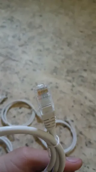 Conjunto de cinco cables de red Ethernet blancos. - Conectores RJ45 en ambos extremos. - Ideales para conexiones de red doméstica o de oficina.