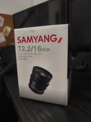 2 objetivos por el precio de 1 Objetivo Samyang 16mm T2.2 para cine. - Modelo: 16mm ED AS UMC CS II. - Tipo: Gran angular. - Robusto - Ultra multicoated (UMC) - Hermoso bokeh Objetivo Meike 25mm F1.8 - Metálico y robusto - Multicoated (multicapa) - Anillo de apertura silenciosa - Hermoso bokeh circular