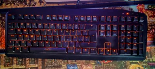 Teclado de ordenador con retroiluminación naranja. - Diseño en color negro. - Teclas con iluminación. - Teclado QWERTY español con letra Ñ.