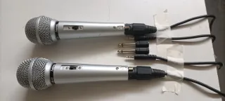 Set de dos micrófonos de karaoke con conexión USB. Ideales para cantar tus canciones favoritas. Mod.Gazechimp - Diseño en color negro. - Cable USB incluido. - Certificación UKCA.