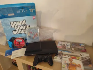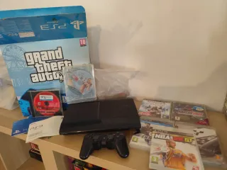 Consola play station 3 🎮 Con un mando , no tiene el cable que lo conecta Con la caja original pero está destrozada por detrás con el paso de los años La consola está en buen estado y funciona perfectamente Con 7 juegos ⚫GTA V que no va en su caja original ⚫SingStar que no va en su caja original ⚫NBA 2K10 que si que va en su caja ⚫Assassins creed la hermandad si va en su caja ⚫ FIFA 14 si va en su caja original ⚫Pess 2009 si va en su caja original ⚫ Grand turismo 5 prologue .