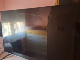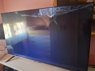 Televisor con pantalla de gran tamaño. - Marco en color negro. - Base en color plateado. - Tienes un golpe en la panatalla