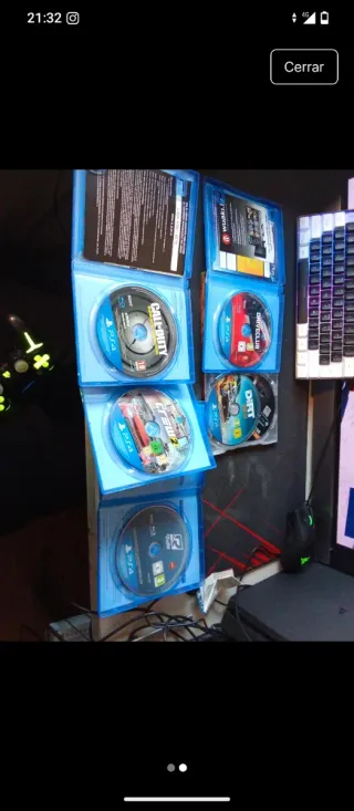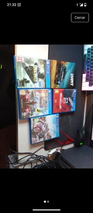 Pack de 4 videojuegos para PlayStation 4. - Call of Duty 10€ - Dirt rally 10€ - Driveclub 10€ - The Crew 2 10€ - Ride 10€ Precios de los juegos sueltos