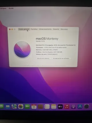 MacBook Pro retina de 2016 en color plata. - pantalla 13.3" retina - teclado español retroiluminado - 8 gb ram - 128 gb original - Dos puertos Thunderbolt 3. - Procesador 2.0 GHz Intel Core i5. - bateria buena - cargador y cable 2 metros usb-c - mac os x monterrey instalado y actualizado Portátil en perfecto funcionamiento sin ningún fallo Cuenta icloud es la mía pero la desactivo y elimino para su venta No sé admiten devoluciones ya que el portátil está perfectamente sin fallos