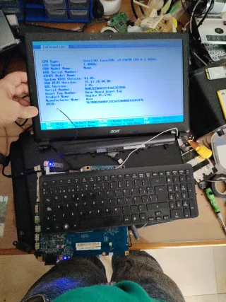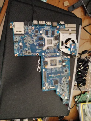 Piezas de repuesto para portátil Acer Aspire V5-571G. Placa base con número de serie NXM2EEB00222116C2E2000 con rocesador Intel Core i3-2367M a 1.40GHz , 1 módulo de 4 GB gráfica GeForce gt620m de 1 GB en buen estado Pantalla 15.6" en buen estado Bisagras buen estado Teclado español numerico en buen estado Altavoces buen estado Módulo wiffi Batería mala