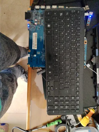 Portátil Asus K52SJ, ideal para piezas o para quien sepa repararlo. Su color es marrón. Intel core i7-2630qm 2 ghz 4 GB DDR3 1 slot libre Gráfica GeForce gt520m 1 gb 500 GB Sin cargador Batería mala Teclado no funciona desconectado - Modelo K52SJ. - Marca Asus. Proviene de lote informático está comprobado y funcionando No sé admiten devoluciones