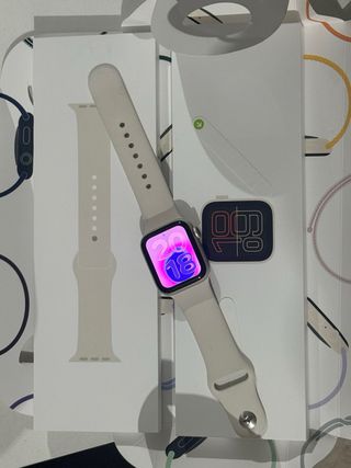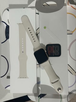 Reloj Apple Watch SE de 40mm en color blanco. conectividad celular y puedes llevártelo sin tener tu celular encima. Funciona perfectamente y con su caja original. - Caja - Correa deportiva.