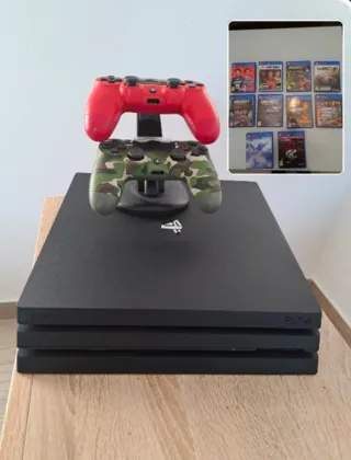 Consola PlayStation 4 Pro de 1TB en color negro. Incluye dos mandos y 10 videojuegos. - Consola PS4 Pro 1TB. - Mando DualShock 4 rojo. - Mando DualShock 4 camuflaje. - 10 Juegos - Estacion de carga de 2 mandos - Cableado Se puede ver y probar sin compromiso, no hago envíos. Esta como nueva.