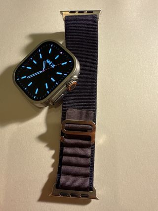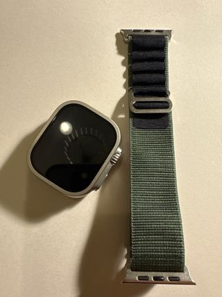 Correa deportiva para Apple Watch Ultra. - Material textil resistente y cómodo. - Cierre de velcro ajustable. - Diseño deportivo y llamativo.