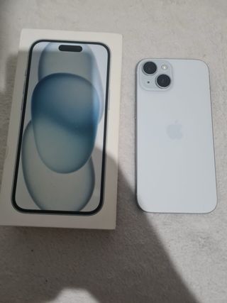 Teléfono móvil iPhone 15 en color plata o blanco. - 90% salud de bateria - Diseño elegante y moderno. - Cámara dual en la parte trasera. - El movil funciona perfecto - Tengo su caja original