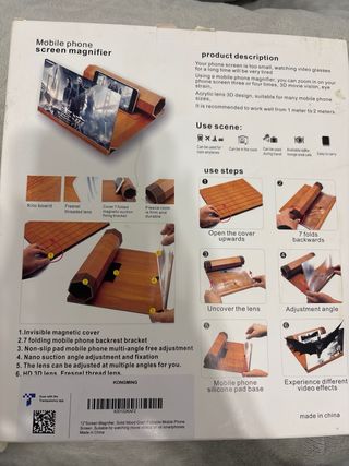 Disfruta de una experiencia de cine en casa con este ampliador de pantalla para tu móvil. Convierte tu teléfono en una pantalla de 12 pulgadas. - Amplía la pantalla de tu móvil. - Efecto de proyección 3D. - Diseño tipo cine.