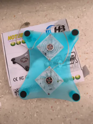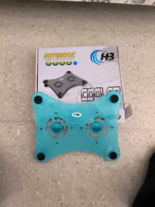 Base refrigeradora para portátil de la marca H3. Diseñada para mejorar la ventilación de tu equipo. - Color azul. - Dos ventiladores integrados. - Diseño ergonómico.