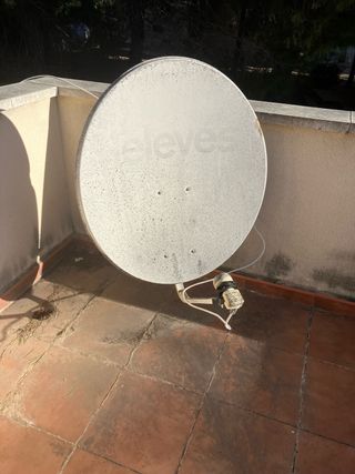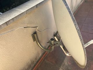 Antena parabólica de 82 cm. con soporte. Lo que se ve oscuro es de la humedad y se puede limpiar - Diámetro de 82 cm. - Marca Televes.