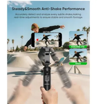 Estabilizador de cardán para teléfono móvil KOSCHEAL C16r. Diseñado para ofrecer un rendimiento estable y suave. - Tecnología anti-vibración. - Ajustes en tiempo real para tomas estables.