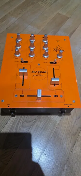 Mesa de mezclas de dos canales en llamativo color naranja. - Diseño compacto y robusto. - Controles intuitivos para DJ. - Acabado brillante.
