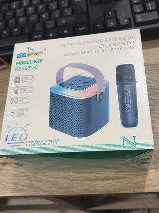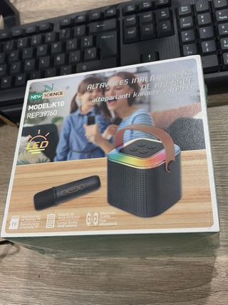 Altavoz portátil para karaoke con micrófono incluido. Cuenta con luces LED y un diseño moderno. - Modelo: K10 - Referencia: 39760 - Reproducción desde tarjetas TF - Batería de larga duración - Altavoces duales - Calidad de sonido HD - Luces de carretera LED