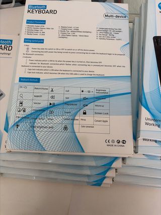 Liquidación de Teclado inalámbrico Cada uno a 5€ - Diseño compacto y ligero. - Batería recargable. - Indicador de tiempo de trabajo sin retroiluminación: 150h. - Indicador de tiempo de trabajo con retroiluminación: 3h.