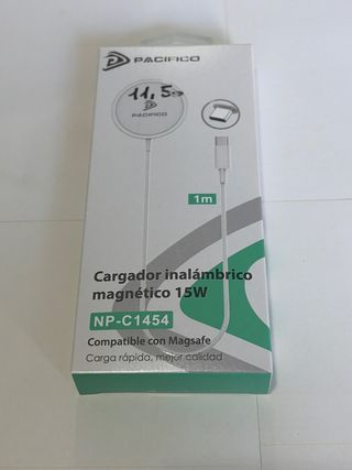 Cargador inalámbrico magnético de 15W con conexión USB-C. - Compatible con MagSafe. - Longitud del cable: 1m. - Carga rápida y de alta calidad.