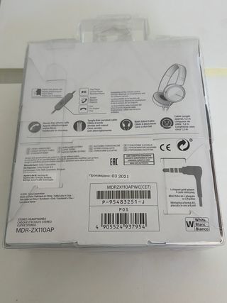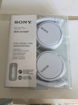 Auriculares estéreo de diadema de la marca Sony, modelo MDR-ZX110AP, en color blanco. Diseñados para smartphones, ofrecen un sonido potente y de alta calidad. - Diseño plegable compacto. - Permiten realizar llamadas manos libres.