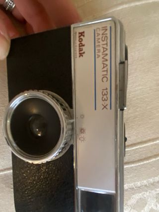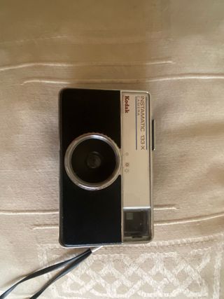 Cámara fotográfica vintage Kodak Instamatic 133X. - Diseño clásico en color negro y plateado. - Modelo Instamatic 133X.