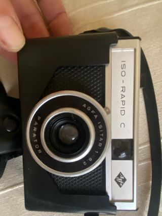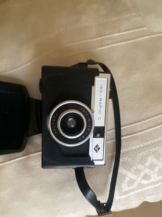 Cámara fotográfica Agfa ISO-RAPID C en color negro y plateado, con su funda. - Modelo ISO-RAPID C. - Incluye funda protectora.